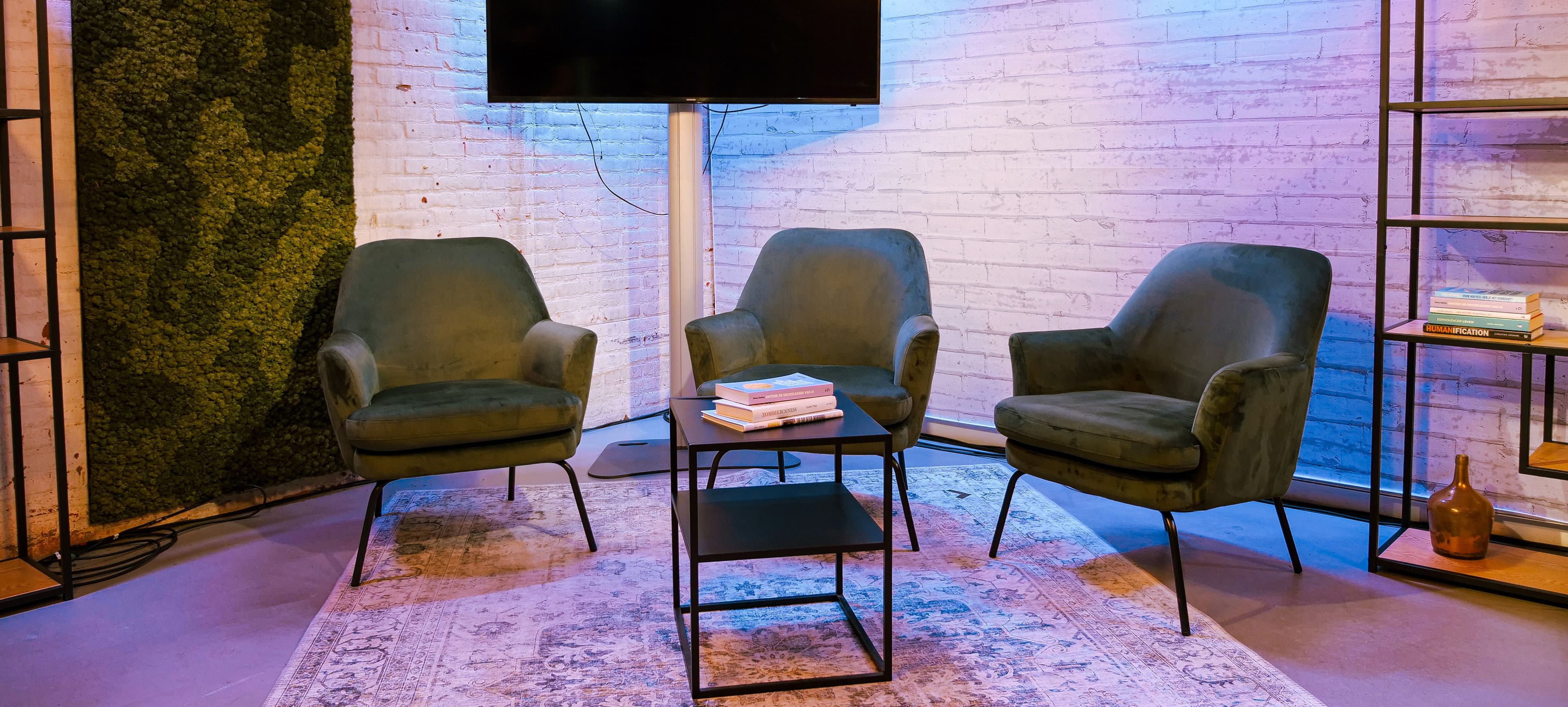 Geen event is hetzelfde, daarom beschikt onze studio over verschillende mogelijkheden voor het opnemen en uitzenden van jouw boodschap. Zo is de talkshowsetting met uitstek geschikt voor een panelgesprek of inhoudelijke dialoog, creëren we met een huiskamersetting een laagdrempelig gevoel van thuis voor interviews en Q+A’s en komt je presentatie perfect in beeld met onze desksetting. We denken graag met je mee om te kijken welke setting het beste past bij jouw doelstellingen.